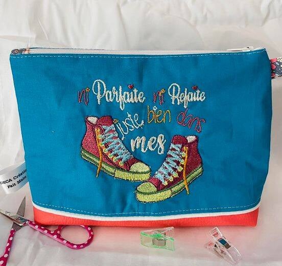 Jolie trousse de toilette entièrement personnalisable avec possibilité de mettre des poches à l'intérieure.